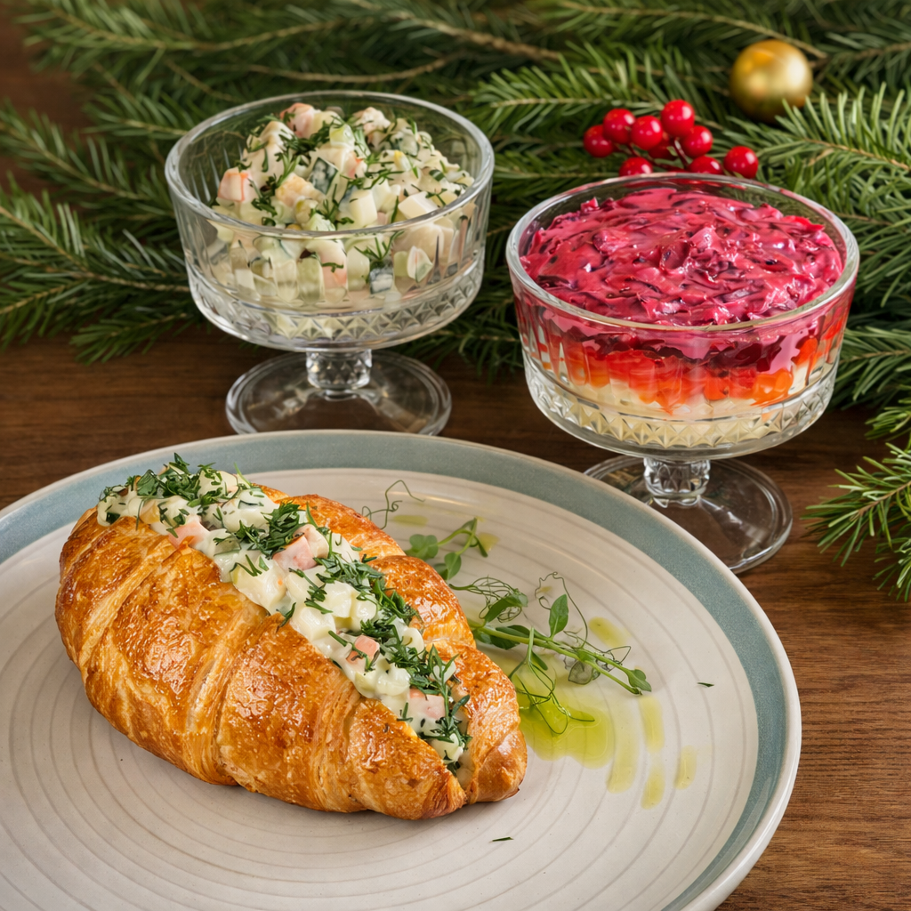 Сельдь под шубой | Оливье с копченой курицей | Оливье в круассане