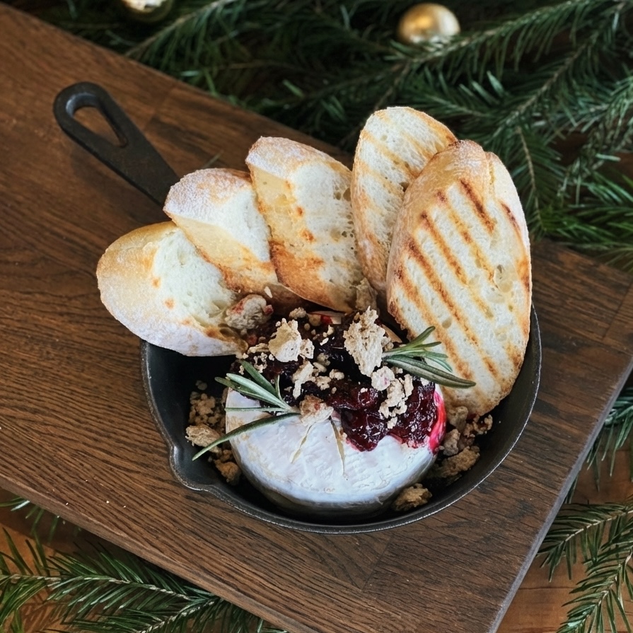 Запеченный камамбер с вишней и халвой